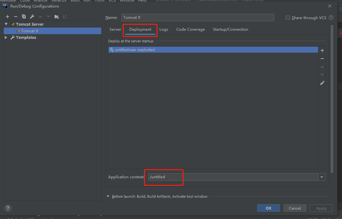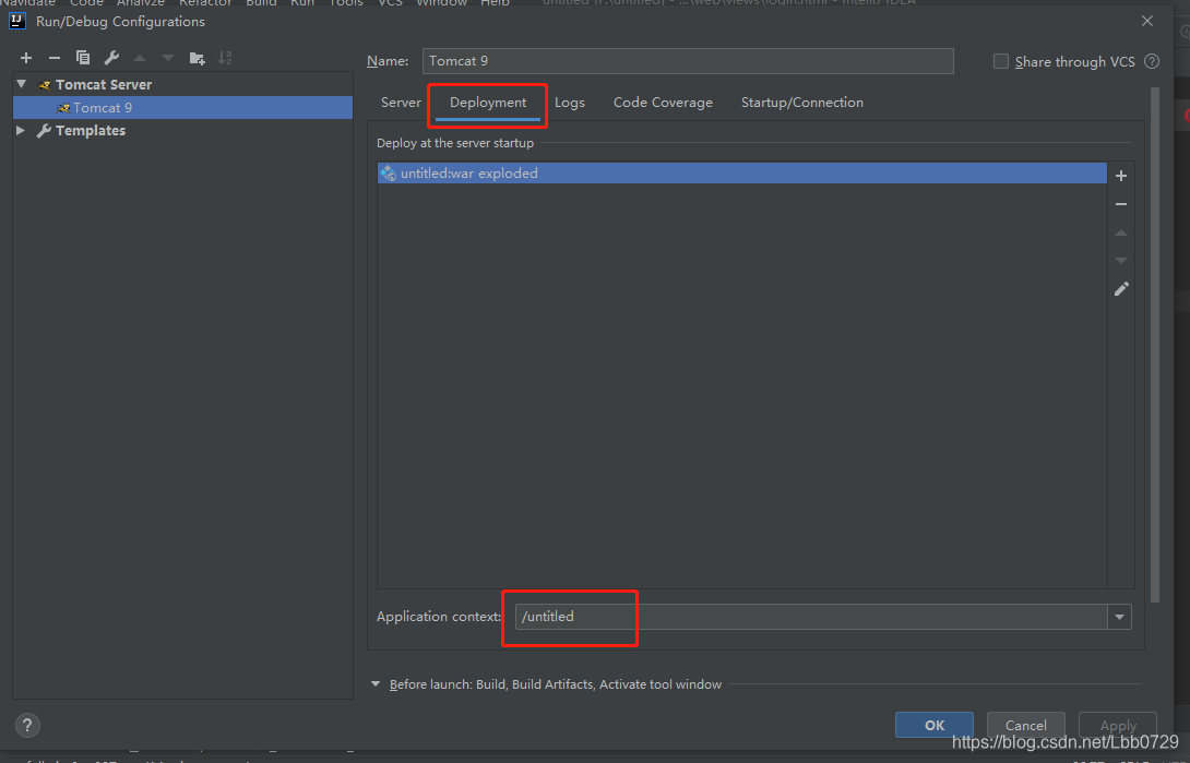 2丶配置tomcat,如下图,默认的默认的URL是取的File-》Project Structure-》Artifacts里面的name,太丑,改掉。如图,因为测试我随便用的