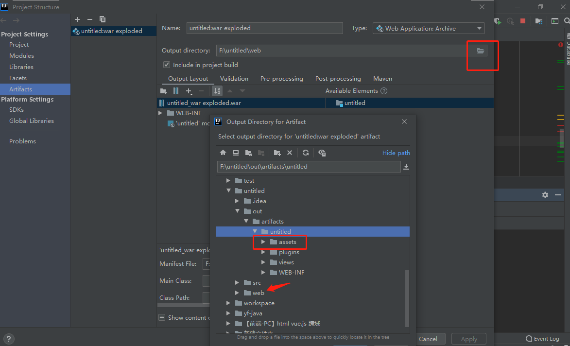解决办法:把Output Directory的路径指定到web目录下面【注意查看web目录下面是否有你的文件夹】,