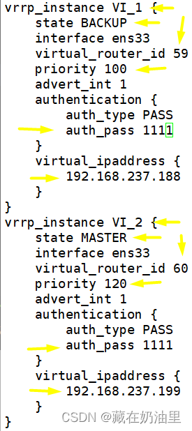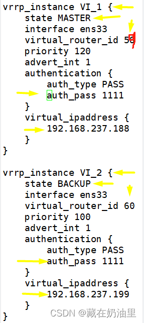 启动2个vrrp实例,每台机器上都启用2个vrrp实例,一个做master,一个做backup,启用2个vip,每台机器上都会有一个vip,这2个vip都对外提供服务,这样就可以避免单vip的情况下,一个很忙一个很闲。 可以提升设备的使用率。