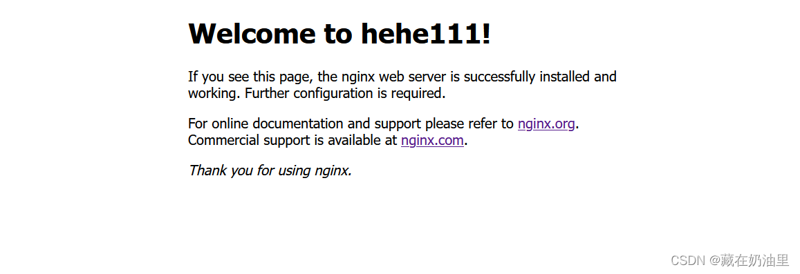 3.浏览器进行访问,默认显示Nginx的欢迎页面,这里使用自定义页面: