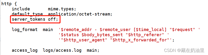 使用 core_module/server_tokens 模块,在 nginx.conf 文件中: