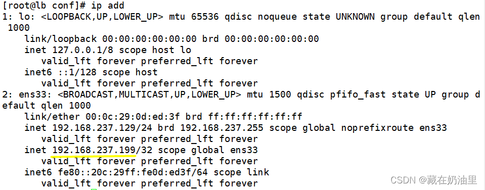 5.实现效果:会在LB1服务器和LB2服务器上看见vip
