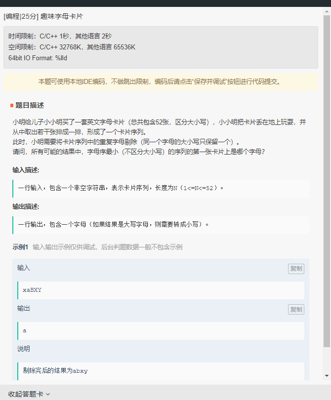 2019拼多多暑期实习生机试题-02趣味字母卡片(java)
