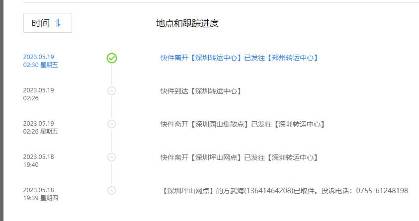 2.随后我们即可看到快递的发货时间、地点和跟踪进度;