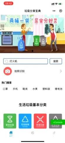 垃圾识别(文字识别,图片识别,关键字识别),基本垃圾分类概念,发现(文章浏览),垃圾分类测试。