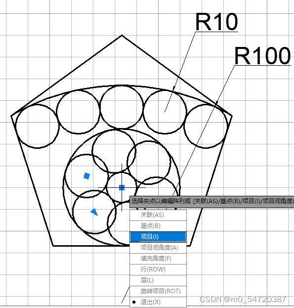 F ->选择半径 ->输入半径 ->选择对象
