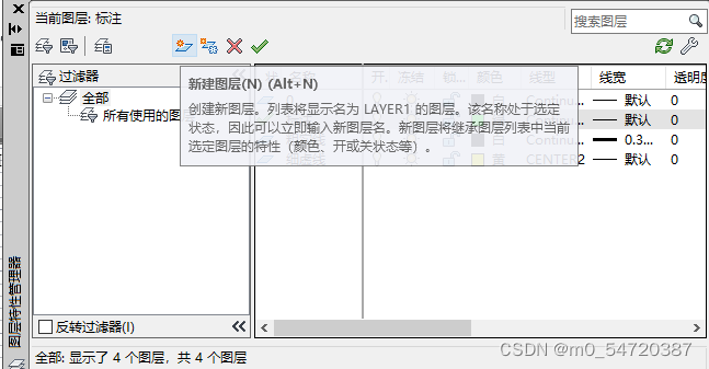 输入快捷键LA->新建图层->设置名称、线宽、颜色等参数(为了保证以后能继续用,需要将该图界面保存为dwt格式,后面直接打开该图形作为初始界面,就可以继续使用)。