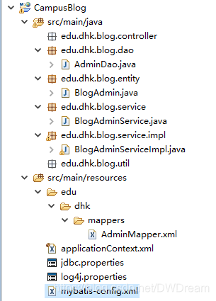 在Spring配置的步骤里已经引入了Mybatis的jar包,现在要做的就是建相关xml文件和项目结构,与Spring整合。