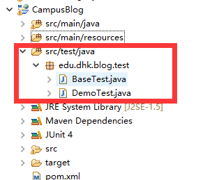 测试建的类结构如图,BaseTest配置注解,作为测试基类,之后每个功能单元测试,继承基类就可: