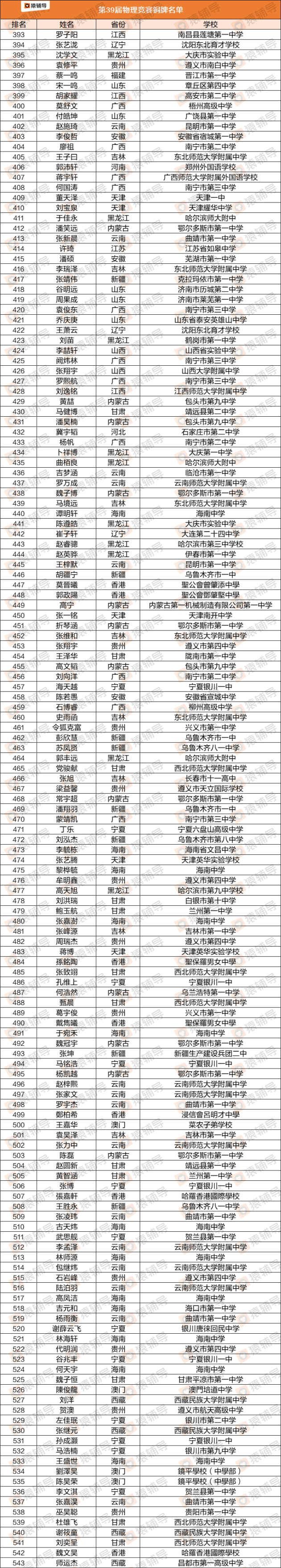 第39届物理竞赛决赛最终获奖名单已经出炉!其中,国集50人,金牌(含集训队)163人,银牌229人,铜牌151人。