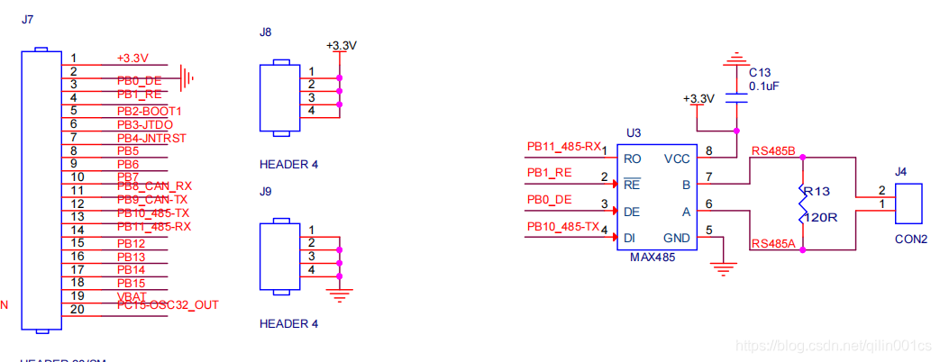 例如:这里PB0 - DE ,PB1 - RE , PB10 和PB11 接的TX和RX