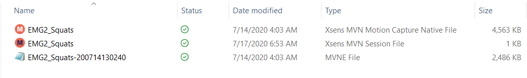 肌电图数据将保存在MVNE文件中,运动学Xsens数据将保存在MVN本机文件中。要在 MVN 软件中同时查看肌电图和运动学数据,您需要在 MVN 中打开 MVN 会话 (MVNS) 文件。此MVNS文件将结合前两个文件的信息以显示在MVN软件中。