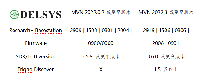 为了使系统实现最佳兼容性,Delsys 系统需要以下固件和 SDK 版本: