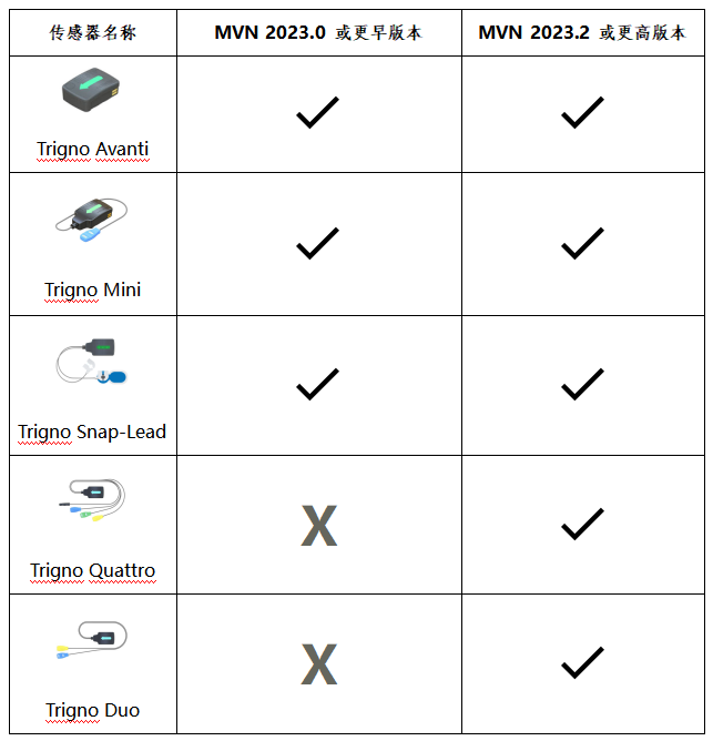 Delsys EMG与 MVN 集成支持下表中列出的传感器: