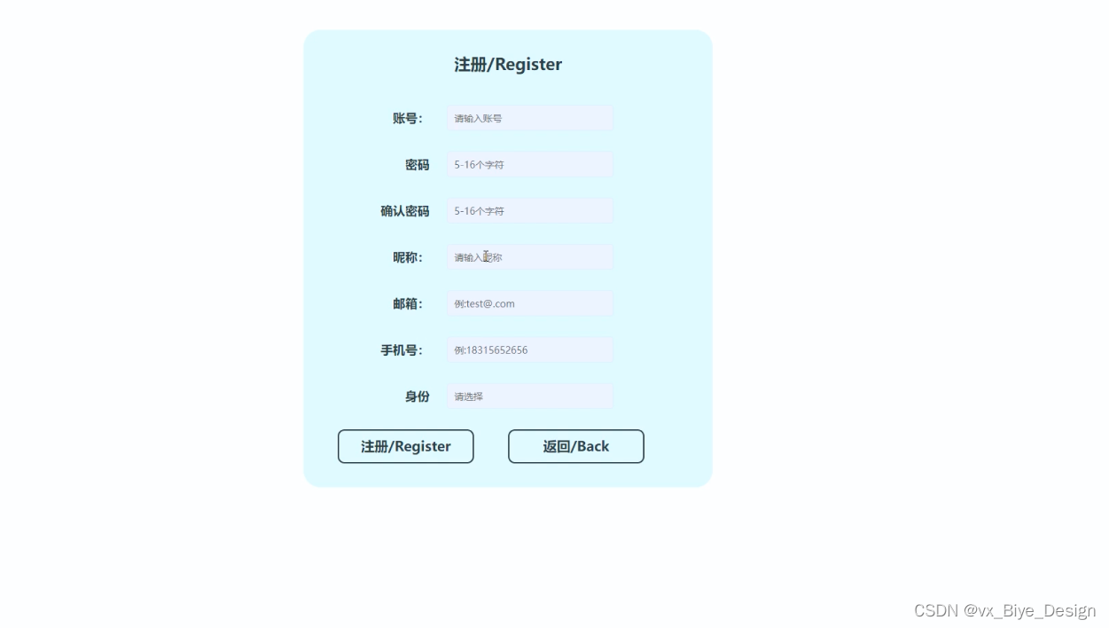 (1)注册登录:当用户想要对系统中所实现的功能进行查询管理的时候,就必须进行登录到系统当中,如果没有账号的话,在登录界面,点击“注册”按钮就会跳转到注册的界面,根据提示填写好注册信息,添加提交,用户的信息在数据库中就添加完成了,然后再输入填写好的账号和密码进行登录;
