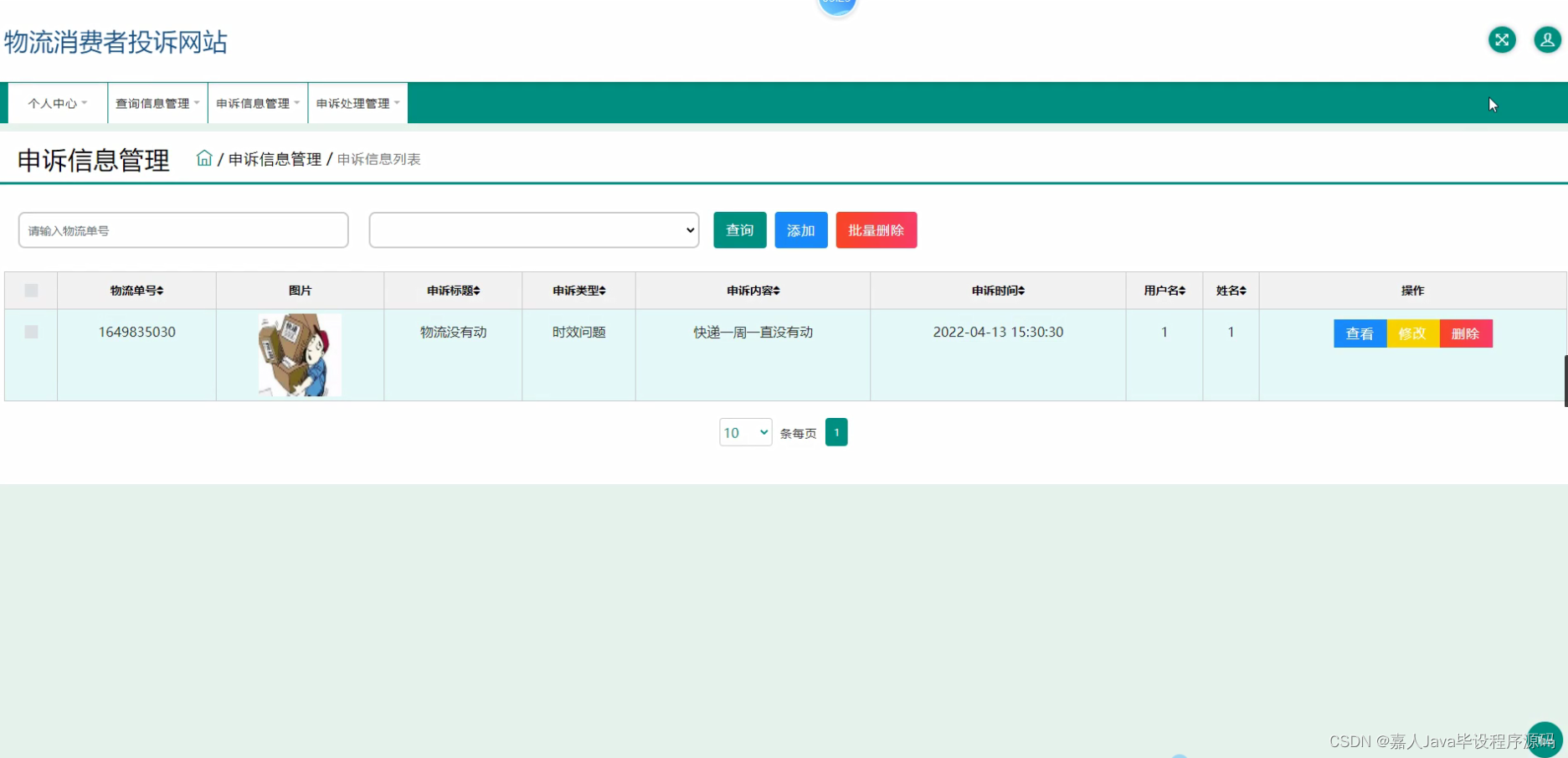 [附源码]JSP+ssm计算机毕业设计物流消费者投诉网站djh22【源码、数据库、LW、部署】