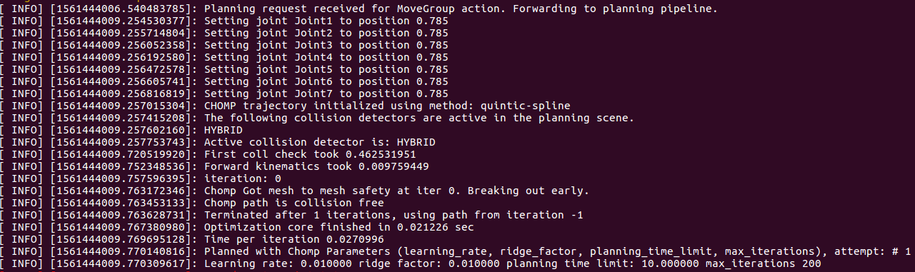 - 要在机器人中使用CHOMP,您必须已经为机器人配备了MoveIt配置包。例如,如果你有一个熊猫机器人,那就叫它