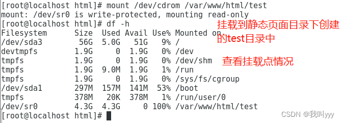 6.在默认获取静态页面的目录下创建test目录,并挂载到此目录中。一定要在默认获取静态页面的目录下创建test目录,否则访问不到。
