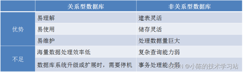 - 关系型数据库与非关系型数据库是人类社会在处理数据不同阶段而出现的不同产物,分别适用于不同的场景。