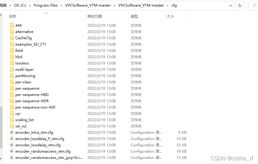 1、选择压缩的cfg文件,几种压缩模式,这边是encoder_intra_vtm.cfg