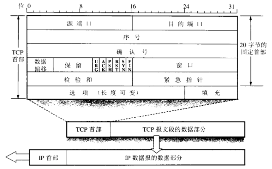 TCP报文段包括 协议首部 和 数据 两部分,协议首部的固定部分有20个字节,首部的固定部分后面是选项部分。