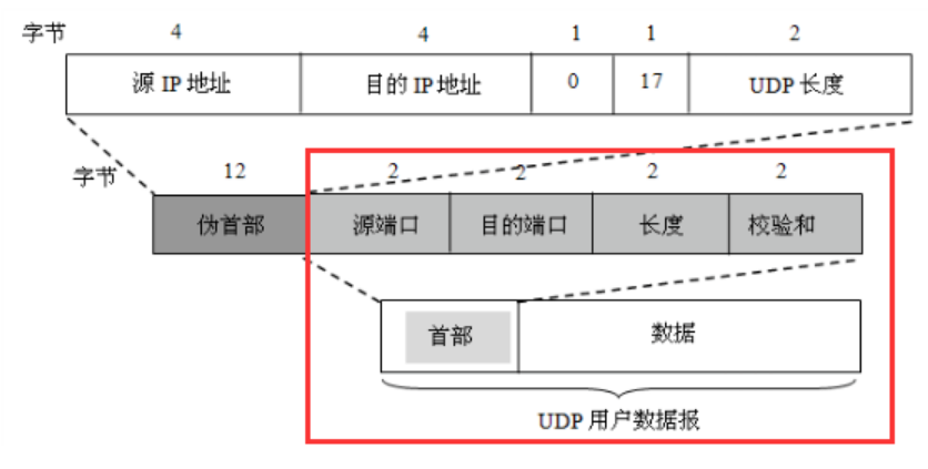 - 校验和占2个字节,范围包括首部和数据两部分。