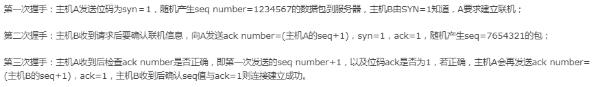 TCP是面向连接的协议,因此每个TCP连接都有3个阶段:连接建立、数据传送 和 连接释放。连接建立经历三个步骤,通常称为“三次握手”。
