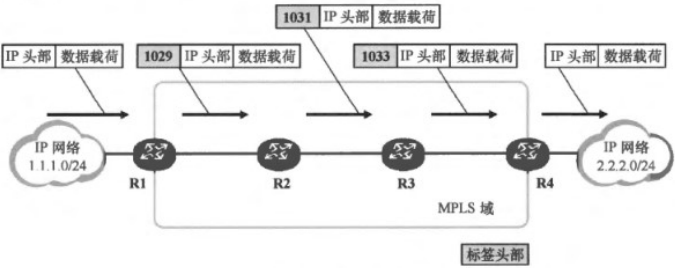 在二层封装和三层封装之间,添加一个和路由条目存在映射关系的标签,之后,维护一张记录对应关系和转发接口表,之后,携带标签的数据来到设备上,将先看到标签,之后基于维护的表进行转发,而不再看三层发IP数据。 ----- 因为标签本身短小且定长,所有,转发效率会高于包交换。 但是,由于标签交换过程需要由压入标签和弹出标签的动作,所以,整体对包交换效率的提升并不明显。(2)包交换