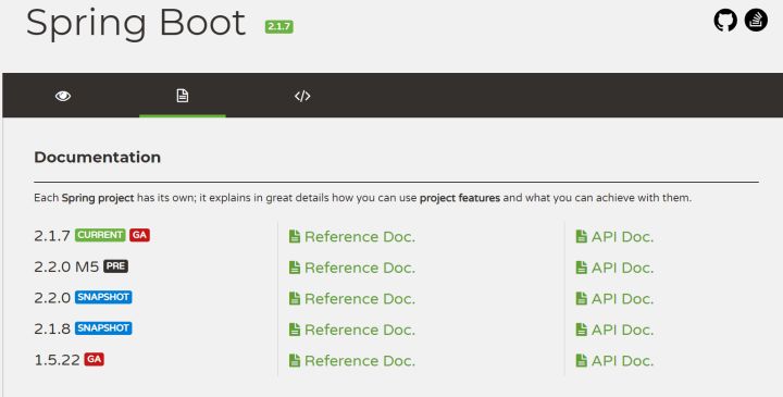 这是 Spring Boot 的文档页面,在左侧的版本号中,我们看到了一些标签,下面对这些标签做一个解释。