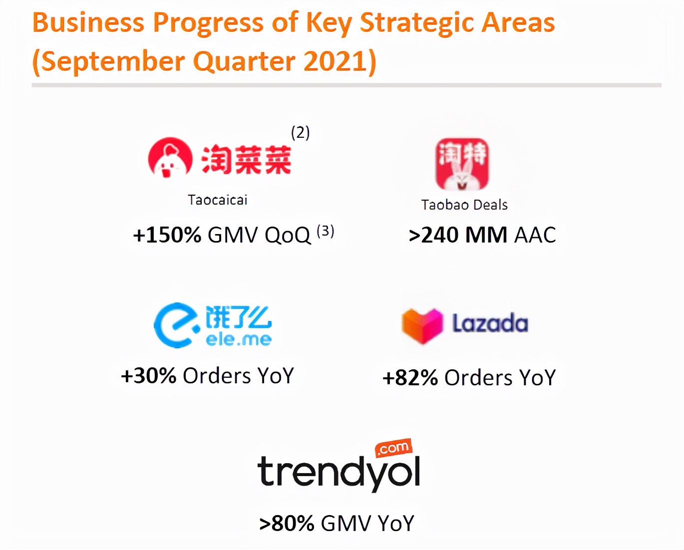 - 在海外市场,东南亚的Lazada用户访问频次连续七个季度上升,订单量同比增长82%,土耳其的Trendyol GMV同比增长80%。