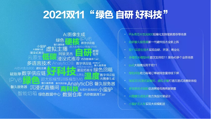 - 阿里自研技术产物AI芯片含光800、磐久服务器、飞天操作系统、小蛮驴物流机器人等都已投入日常使用