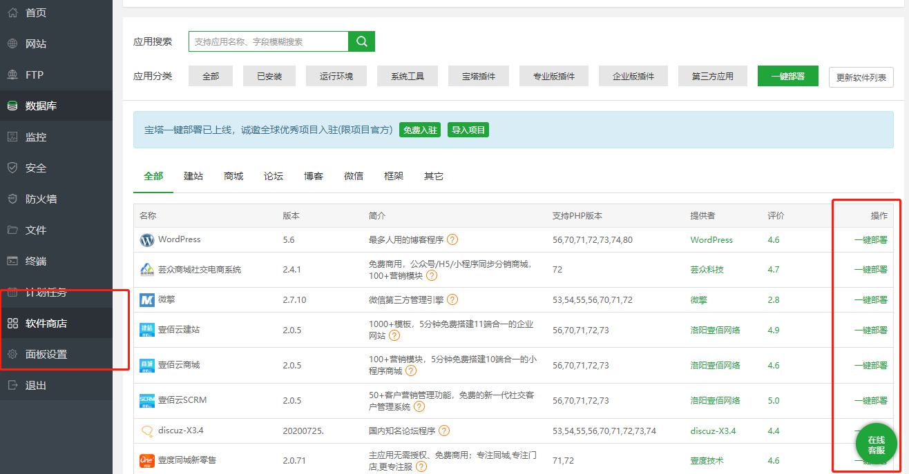 在软件商城使用一键部署搭站就行了