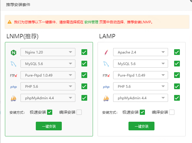 根据自己的需要一键安装套件