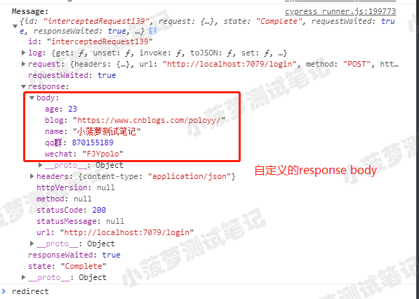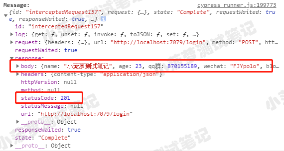 Console 查看 cy.wait() 返回的对象