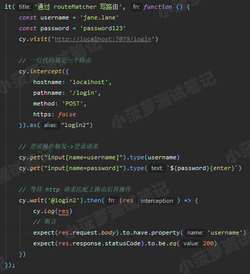 cy.wait('@login3').its('response.statusCode').should('eq', 200)// 断言匹配此路由的请求接收到包含【redirect】的请求 body