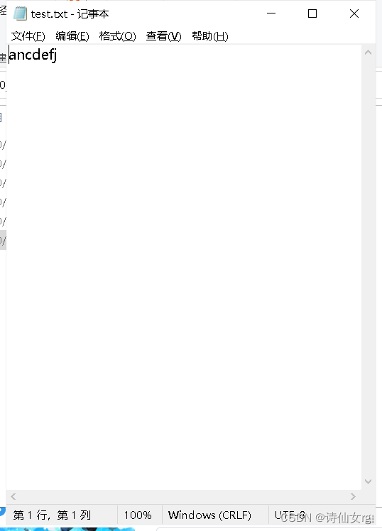 {FILE* pf = fopen("test.txt", "w");if(pf == NULL){perror("fopen");return 1;}char arr[10] = "ancdefj";fputs(arr, pf);fclose(pf);pf = NULL;return 0;