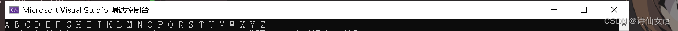 {char c;FILE* pf;pf = fopen("test.txt", "r");//只读,文件应该存在在文件夹中if(pf == NULL){return 1;}for (c = 'A'; c <= 'Z'; c++)fputc(c, pf);for(int i = 0;i<=26;i++){int a = fgetc(pf);printf("%c ", a);}fclose(pf);pf = NULL;return 0;