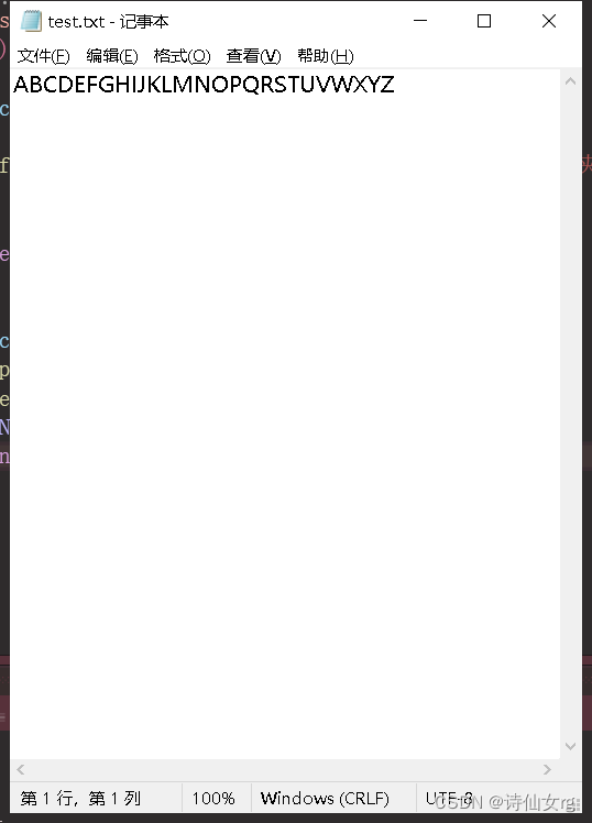 {char c;FILE* pf;pf = fopen("test.txt", "w");if(pf == NULL){return 1;}for (c = 'A'; c <= 'Z'; c++)fputc(c, pf);fclose(pf);pf = NULL;return 0;