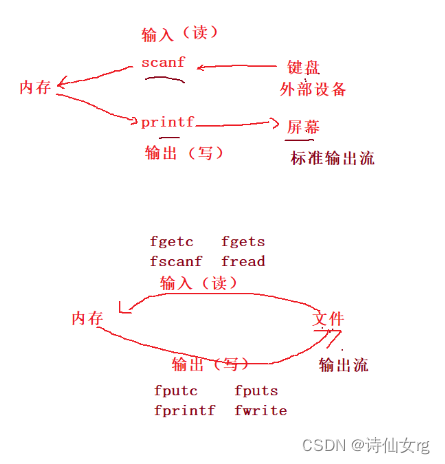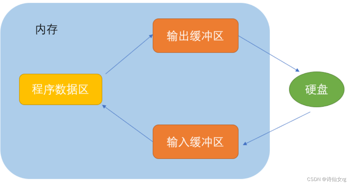如图所示,将数据从内存中取出放入文件中即为输出,将文件中的数据放入内存中为输入。