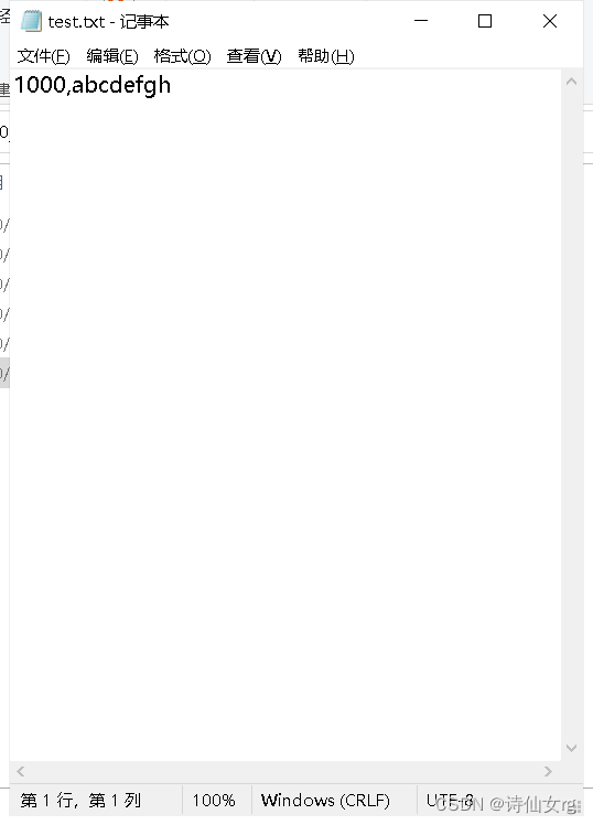 {int a = 1000;char arr[10] = "abcdefgh";FILE* pf = fopen("test.txt", "w");if(pf == NULL){perror("fopen");return 1;}fprintf(pf, "%d,%s", a,arr);fclose(pf);pf = NULL;return 0;