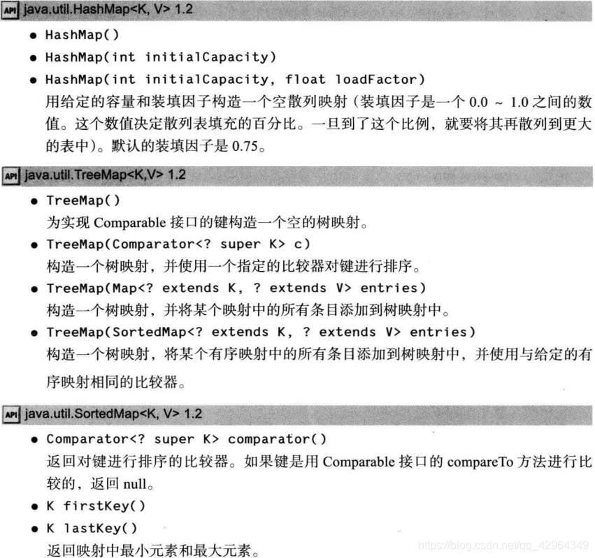 散列映射(HashMap)对键进行散列,树映射(TreeMap)用键的整体顺序对元素进行排序,并将其组织成搜索树。散列或比较函数只能作用于键,与键关联的值不能进行散列或比较。