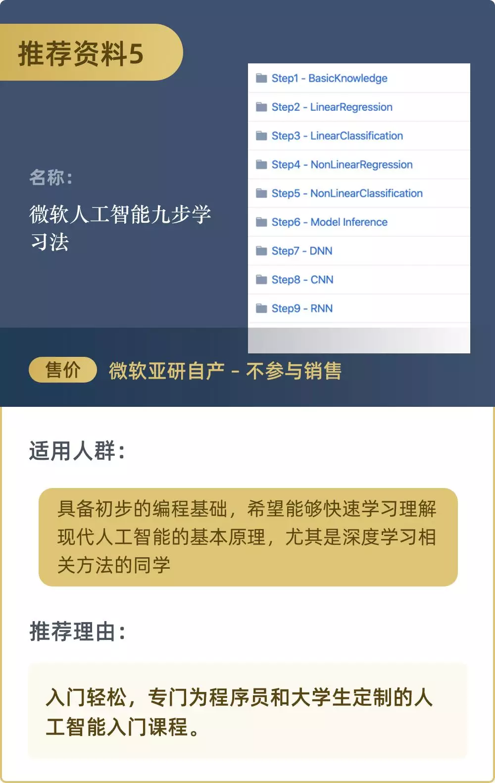 这些资料其中4个是人工智能书籍,另外还加一个:人工智能黄埔军校—微软亚洲研究院人工智能学习材料。