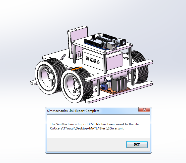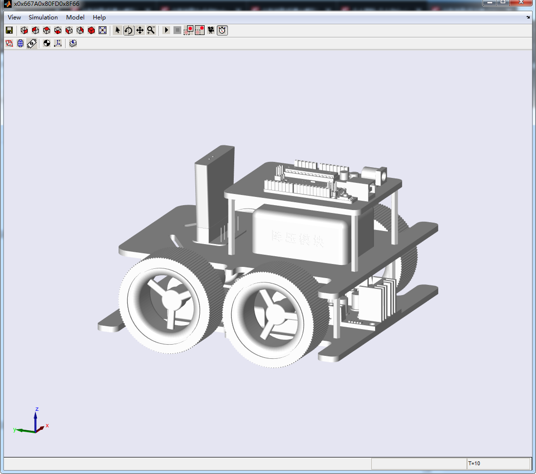 在这里我就用早期建立好的一个模型,一个智能遥控车,丑是丑了点,莫建议,反正在这里不重要。如图所示: