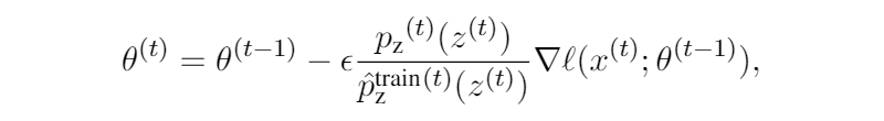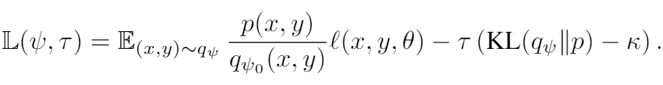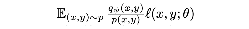 因为外层分布的优化是基于一个良好的数据分布 的,我们不能保证 是有效的数据分布,因此作者将该问题转化成了一个 importance sampling 的问题,这样保证了数据点 是从真实数据中采样得到的。