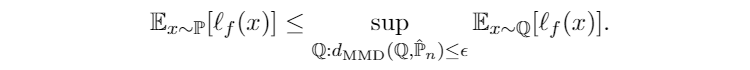 本文使用 MMD(maximummean discrepancy)对 uncertainty set 进行建模,得到了 MMD DRO。亮点有三: