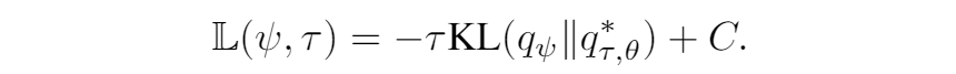 于是巧妙地将这个最大化期望损失的问题转换成了最小化两个分布的 KL 散度,其中 依赖于真实数据分布 ,这是我们无法得到的,因此作者将这一项看作常数,再经过一系列转换变成了: