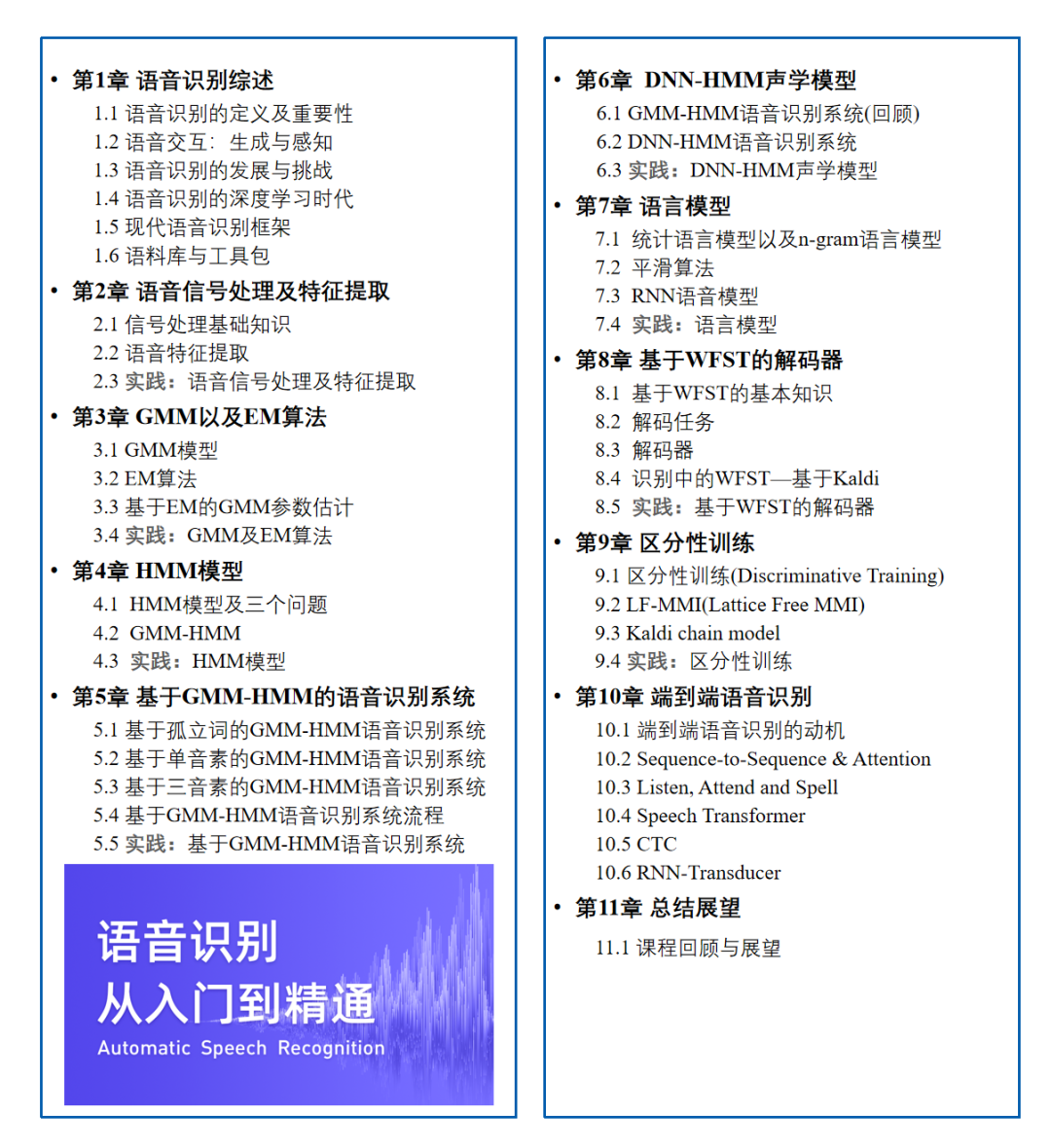 针对这些问题,深蓝学院联合西北工业大学ASLP研究组谢磊教授团队推出『语音识别:从入门到精通』在线课程。这门课程从经典的GMM-HMM识别系统到端到端的识别系统,帮助大家详细梳理整个知识体系,同时培养良好的实践能力,以贴近工作中的实际需求。