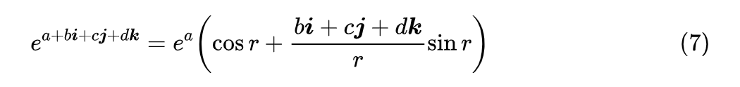 该恒等式在四元数中同样成立,因此可以照搬。接着我们利用了复指数: