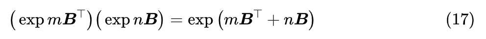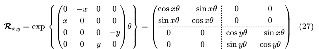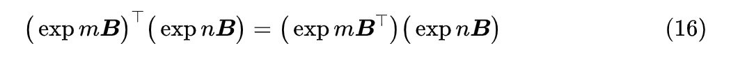 当然这跟本文的主题关系不大。对于 RoPE 的推导,我们主要利用到矩阵指数的如下性质: