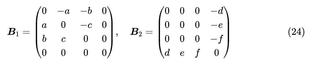 因此,我们至少要考虑 4×4 矩阵,它有 6 个独立参数,不失一般性,考虑正交分解: